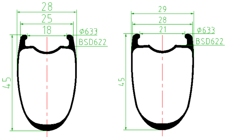 我们的圈刹系列(内宽 18 毫米)和碟刹系列(内宽 21 毫米)轮圈具有更宽的轮廓,可使用更宽的轮胎以实现更好的空气动力学性能。 当轮辋的宽度接近轮胎的宽度时。 这种气流往往比宽轮胎上的窄轮辋更平滑。