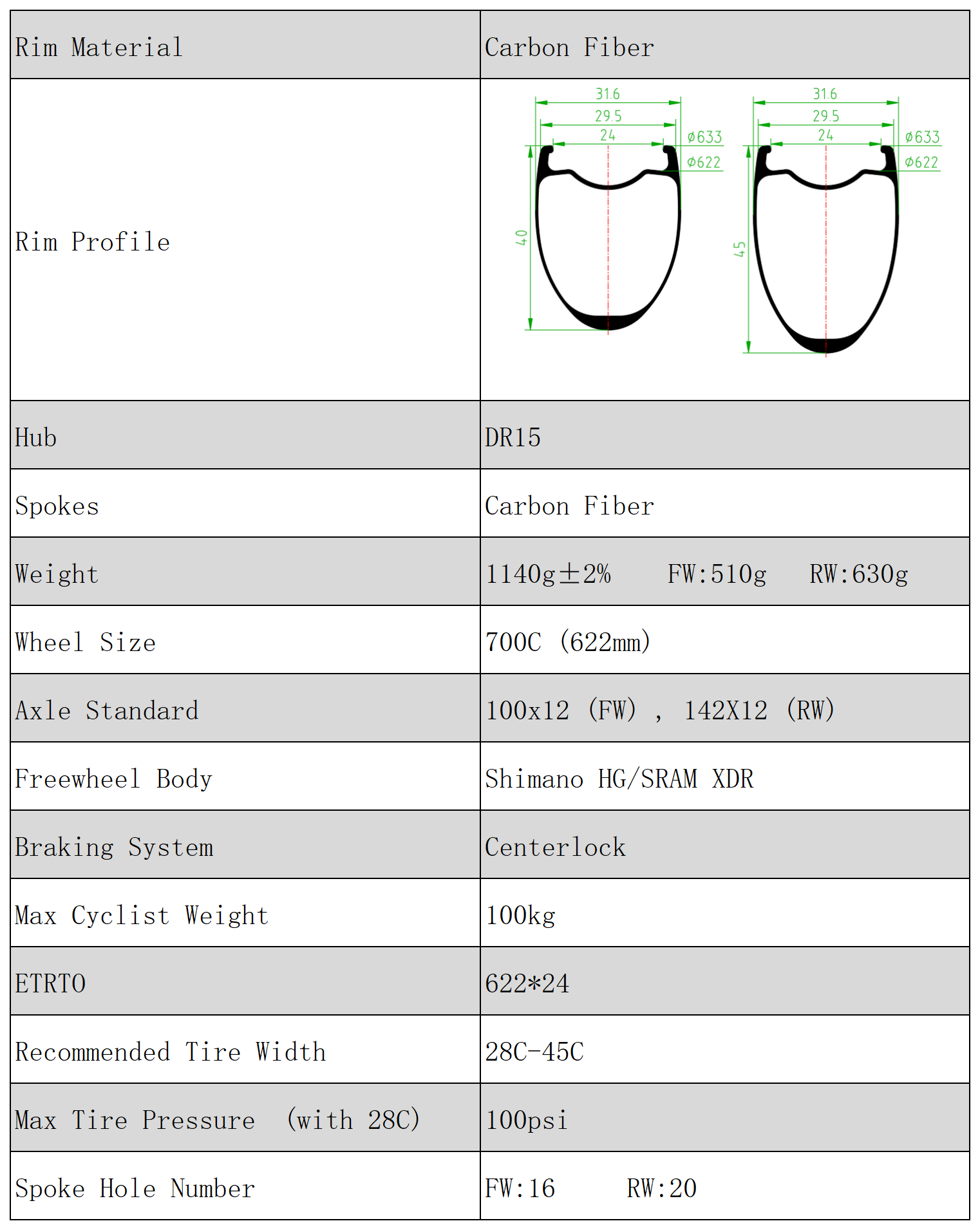 该轮组的骑手重量限制为 100 公斤,包括自行车和行李的重量。
